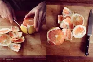 Step 1 : 水果切头切尾(有的柑橘类水果的果皮会比较厚,所以要根据实际情況來切,标准是切到看不到果皮)