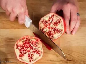 Step 1 : 石榴对半切,在干净碗內装适量饮用水