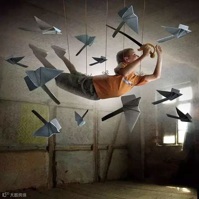 小孩羡慕小鸟的自由飞翔。