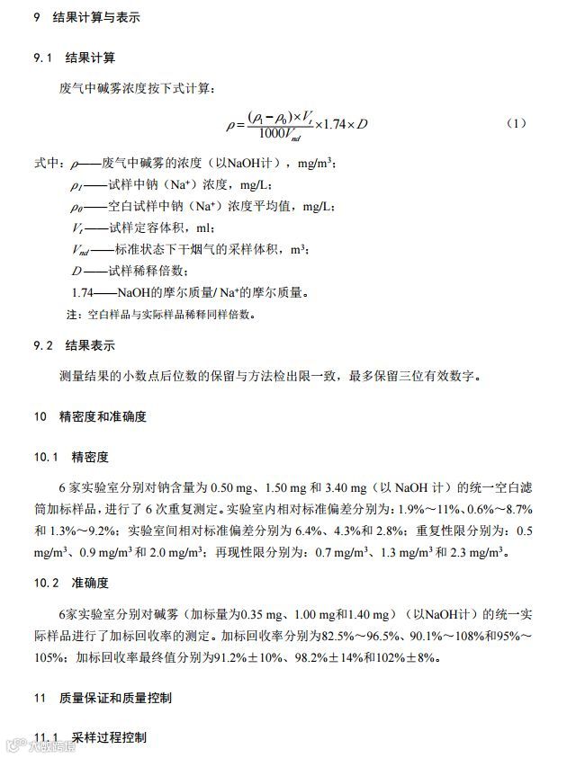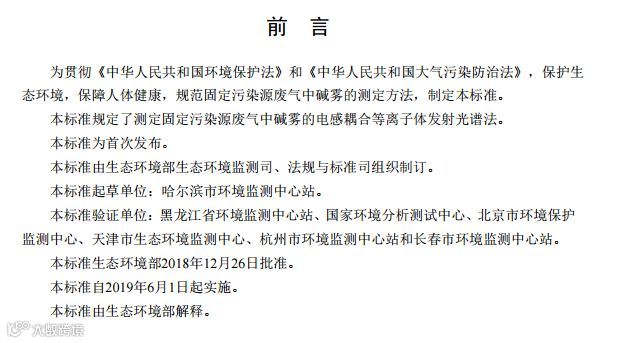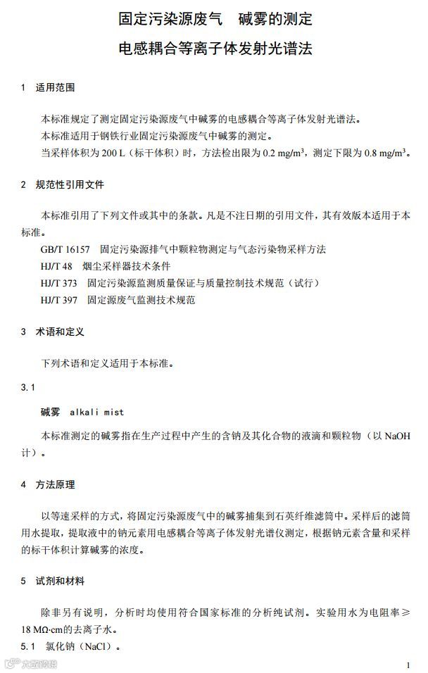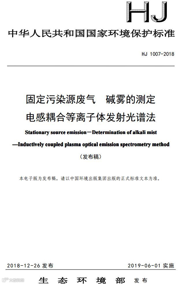 固定污染源废气碱雾的测定电感耦合等离子体发射光谱法(HJ 1007-2018)