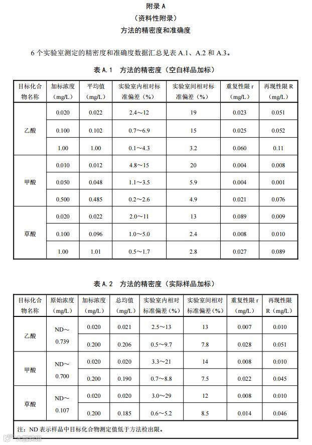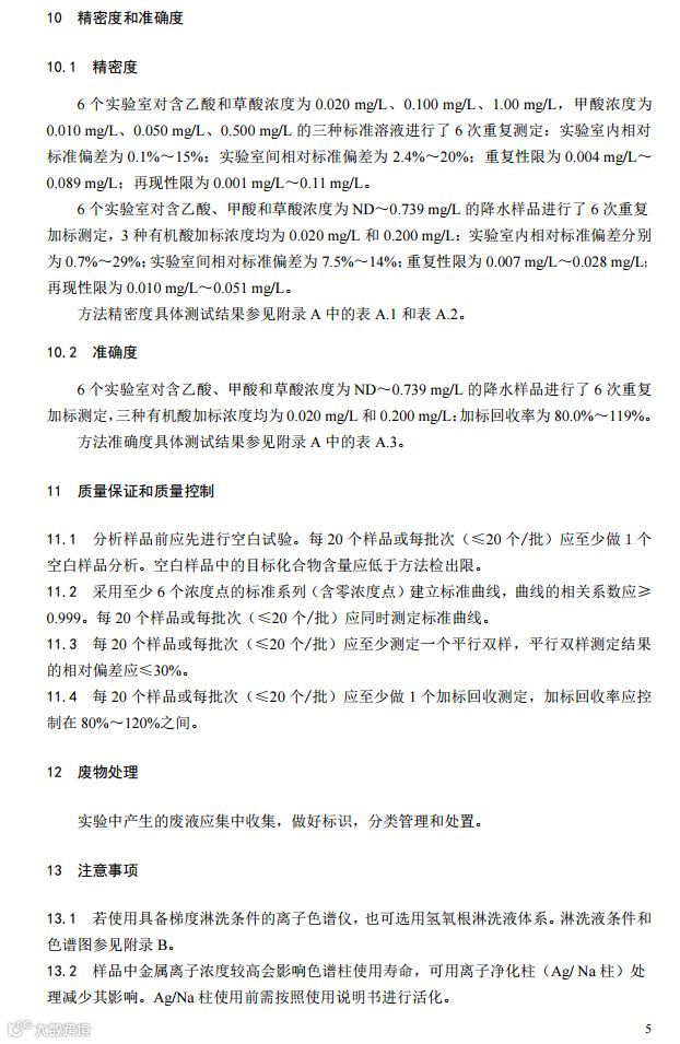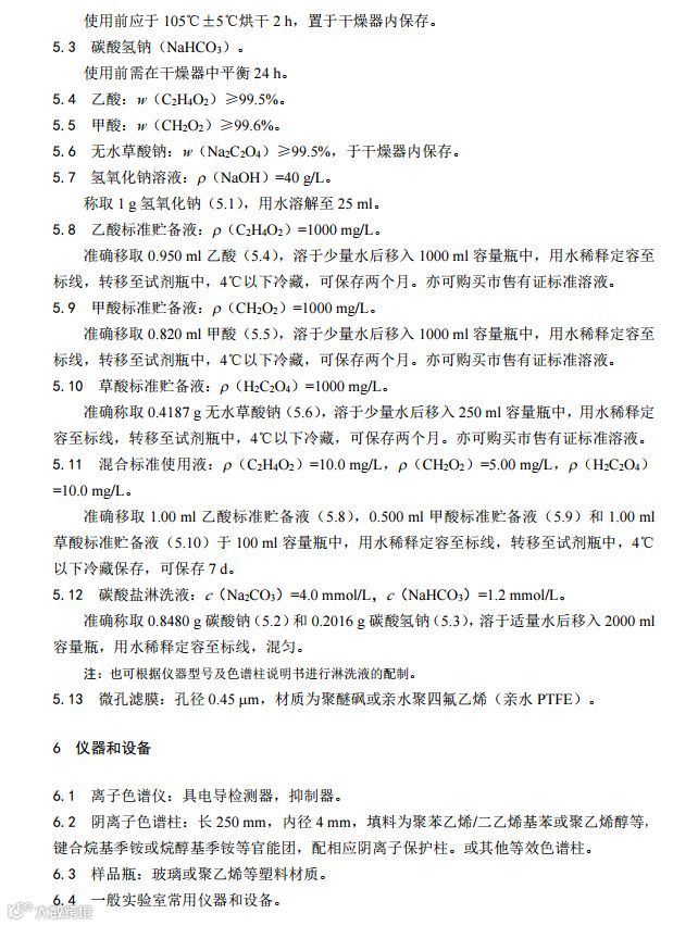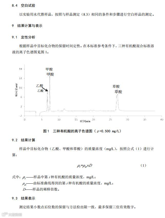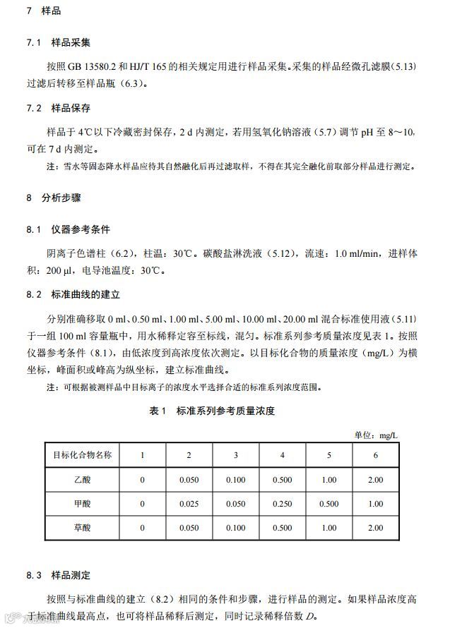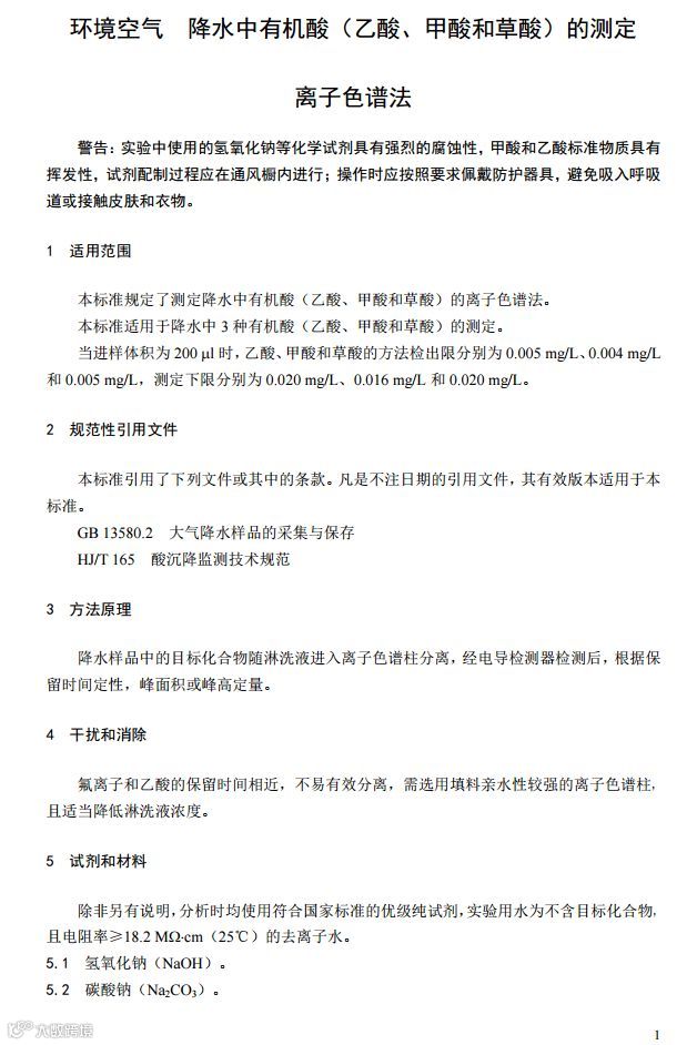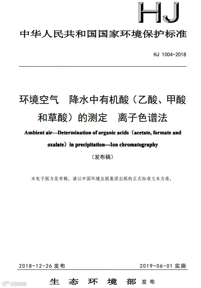 一、《环境空气 降水中有机酸(乙酸、甲酸和草酸)的测定 离子色谱法》(HJ 1004-2018);