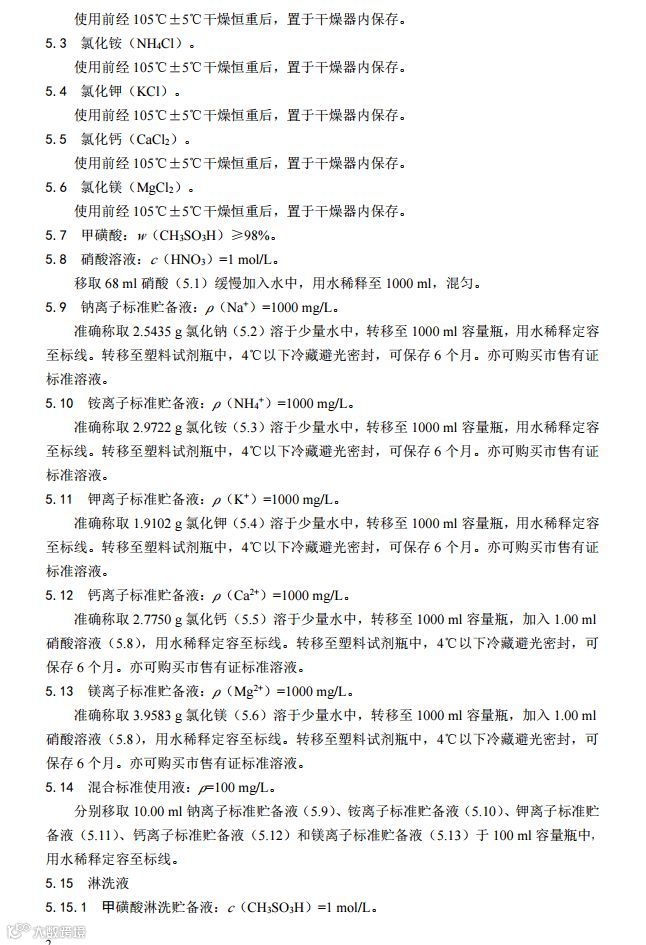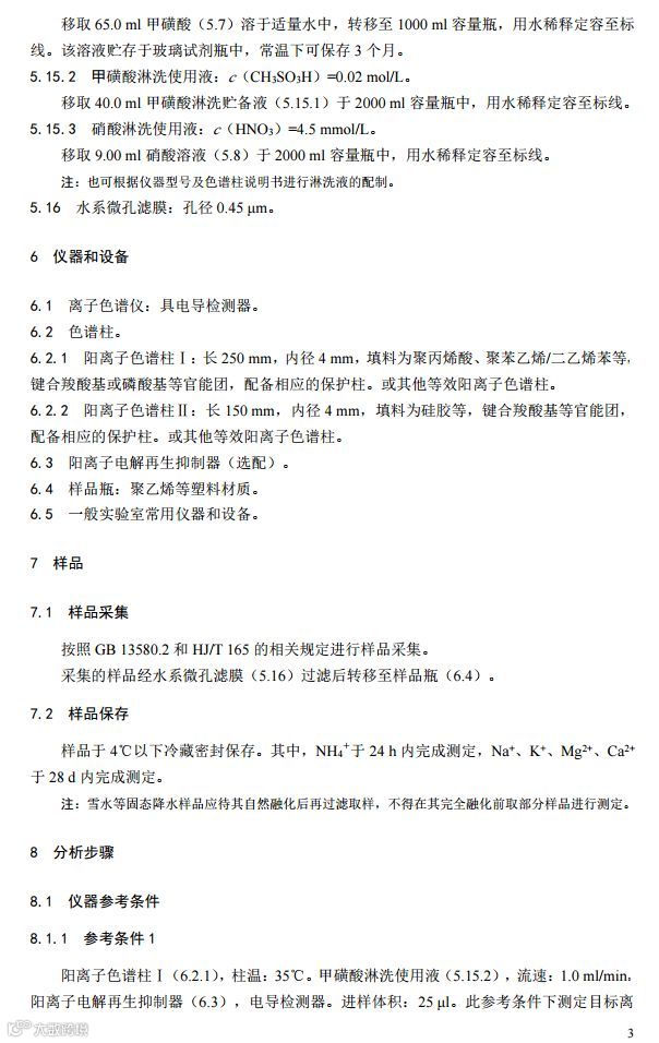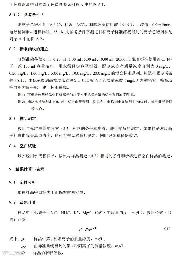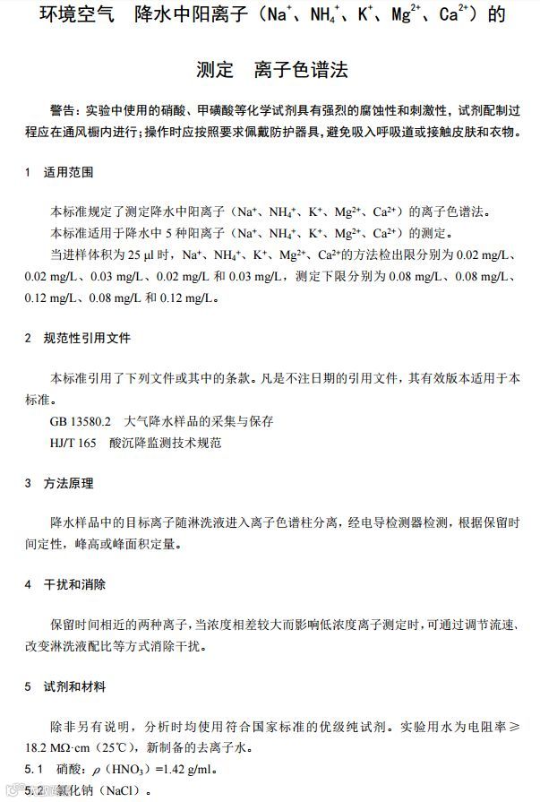 环境空气降水中阳离子(Na+、NH4+、K+、Mg2+、Ca2+)的测定离子色谱法(HJ 1005-2018)