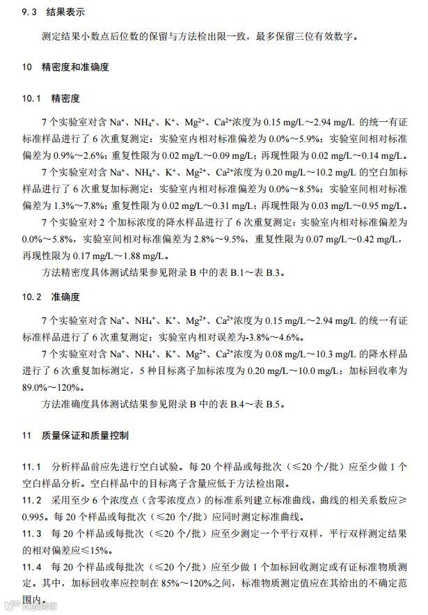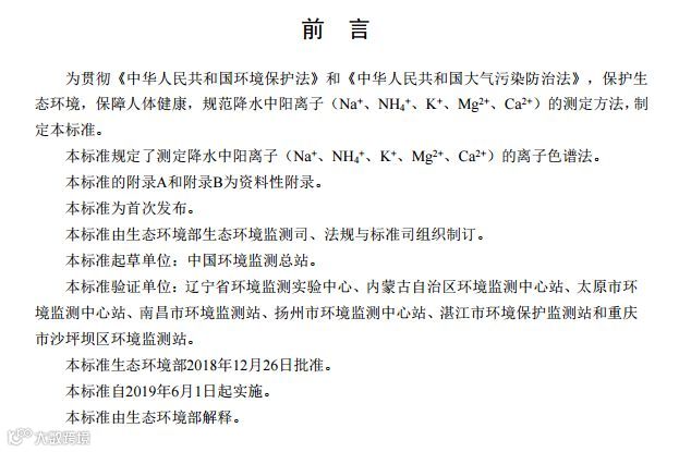 二、《环境空气 降水中阳离子(Na+、NH4+、K+、Mg2+、Ca2+)的测定 离子色谱法》(HJ 1005-2018);