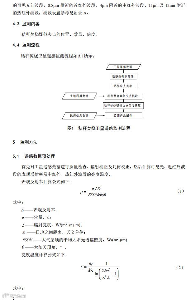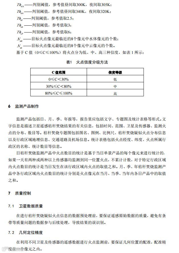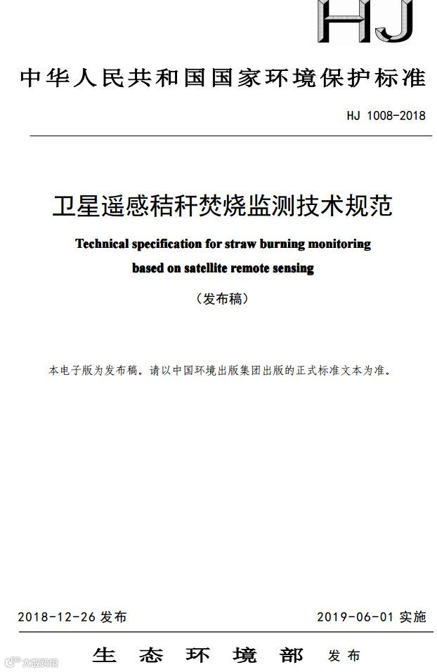 卫星遥感秸秆焚烧监测技术规范(HJ 1008-2018)