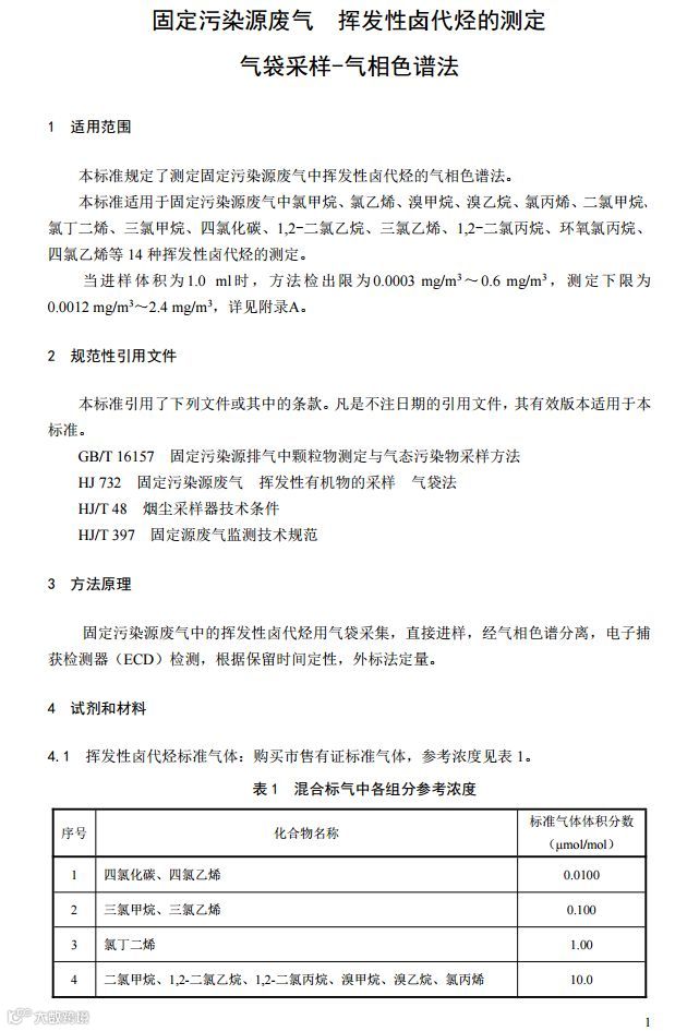 三、《固定污染源废气 挥发性卤代烃的测定 气袋采样-气相色谱法》(HJ 1006-2018);