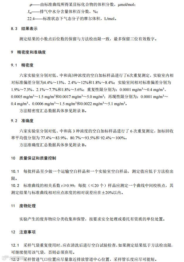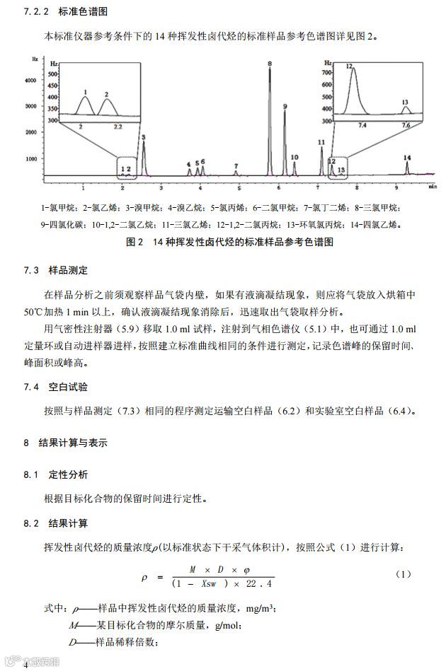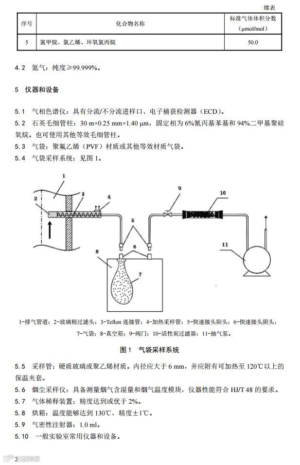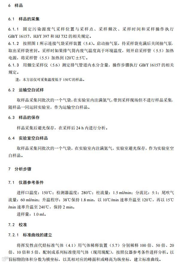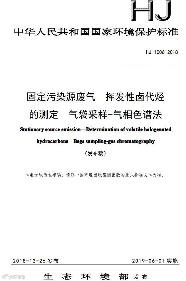 固定污染源废气挥发性卤代烃的测定气袋采样-气相色谱法(HJ 1006-2018)