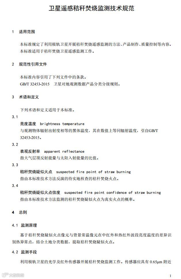 五、《卫星遥感秸秆焚烧监测技术规范》(HJ 1008-2018)。