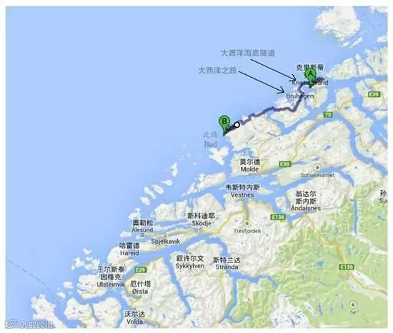 大西洋之路呈‘之’字形,不仅穿越了 12 座稍微高出海面的低桥,而且横跨了西部峡湾莫尔德 (Molde) 和克里斯蒂安松 (Kristiansund) 之间的所有岛屿。