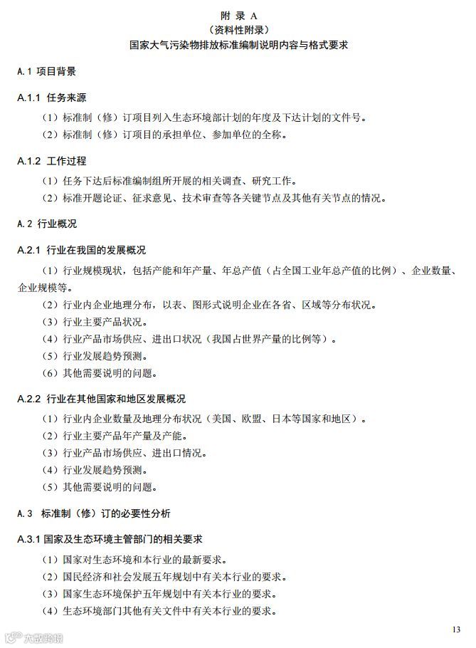 为贯彻《中华人民共和国环境保护法》《中华人民共和国大气污染防治法》,规范国家大气污染物排放标准制修订,制订本标准。本标准规定了制订固定污染源大气污染物排放标准的基本原则和技术路线、主要技术内容的确定、标准实施成本效益分析、标准文本的结构和标准编制说明主要内容等要求。本标准为首次发布。