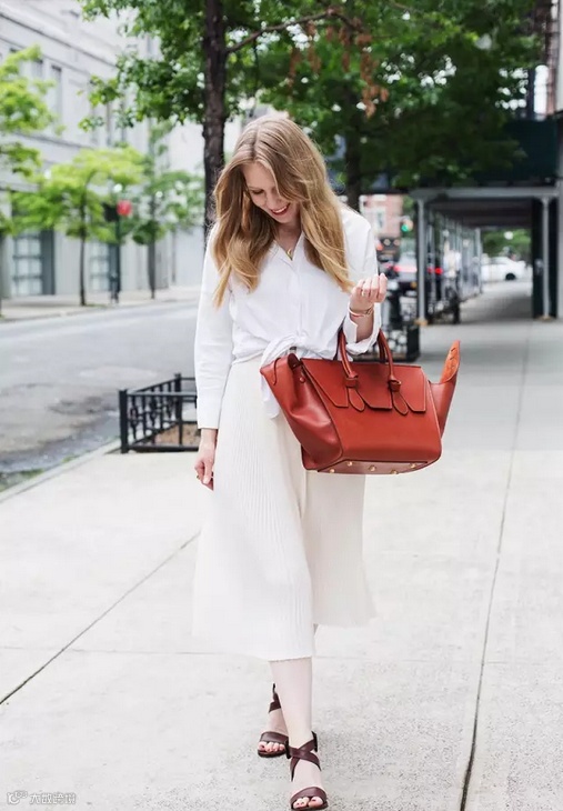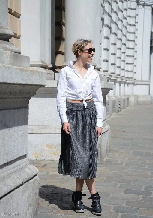 衬衫是最容易这样处理的单品,满脑都是拥有美好肉身的超模们身穿打结衬衫、露出小蛮腰的热辣身影!当然时尚博主们也不逊色,她们文静含蓄的系结衬衫似乎更接地气。
