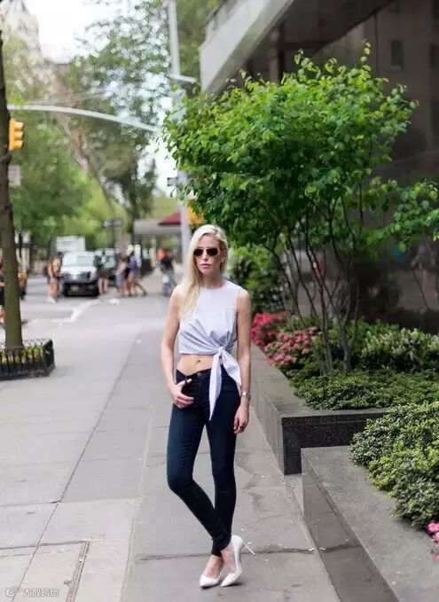 不知道是不是颜值高、身材好的姑娘才能这么任性!80年代土掉渣的穿法也一样理直气壮用起来,比如把衣角随意地系个结,曝在个人网站上晒一晒。没想到啊,居然也流行起来...