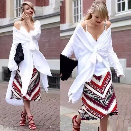 无论是在腰上端系,还是在腰部以下打结,都能起到突显腰部线条的作用,前提是腰上不能有过于明显的救生圈。