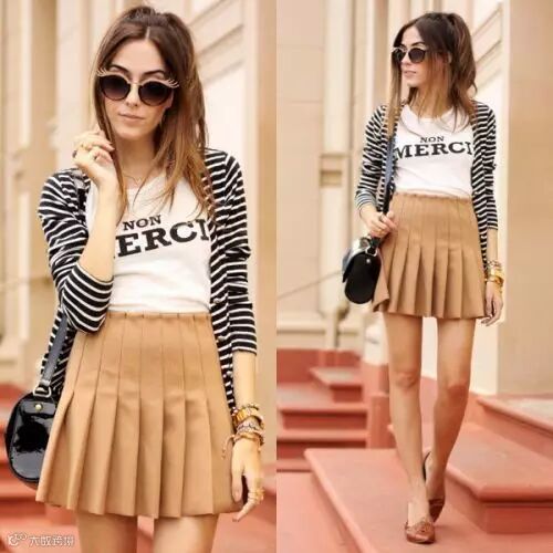 简约的上衣塞进高腰短裙短裤,有时候,根据情况加一根细细的腰带,提高腰线,高跟鞋以很有女人味的尖头细跟居多!这样的穿搭,搭配高跟鞋就是小女人,搭配帆布鞋就会“学生妹”一些。
