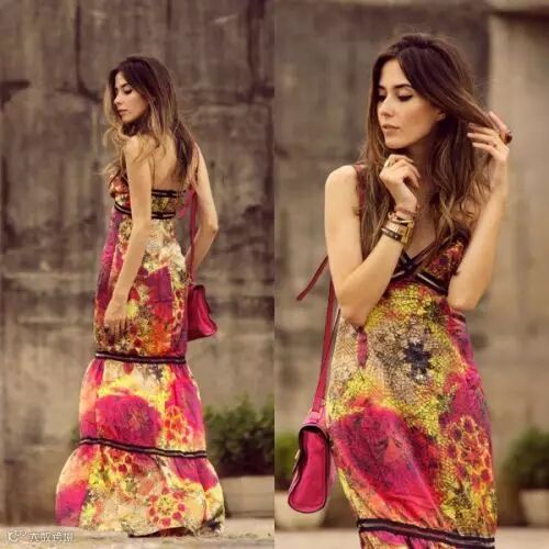 即使是度假印花裙,也要选择高腰线的!Flávia钟爱各类印花裙,而她人很瘦而且皮肤白,所以基本上的印花都能轻松hold住,很多印花都显胖,所以如果身材不够瘦的,请谨慎!瘦子请自动忽略!