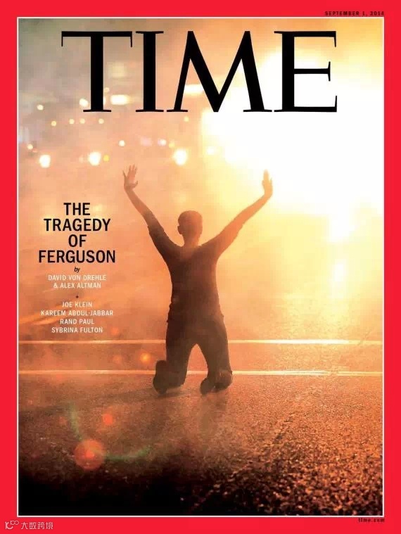 密苏里州弗格森小镇的黑人少年迈克尔布朗被白人警察枪杀事件震动全美,随后引发了经久不息的骚乱,所有新闻媒体都做了报道,但时代杂志的这个封面,是其中最让人难忘的。讽刺的是,拍摄这张照片的摄影师Scott Olson也被当地警方当场逮捕。