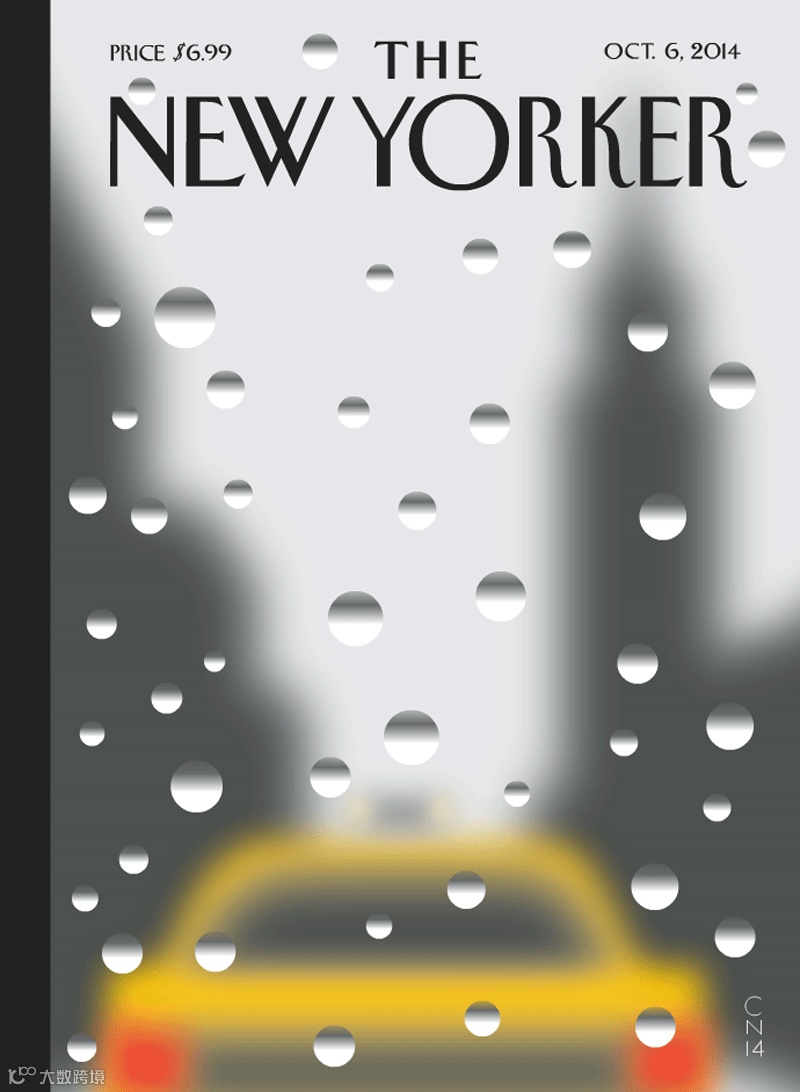 这是纽约客杂志有史以来第一个动图封面,叫《雨天》。你可以看到窗玻璃上的雨水在一滴滴滑落。今年很多美国杂志都在网络上推出了这样的动图封面。