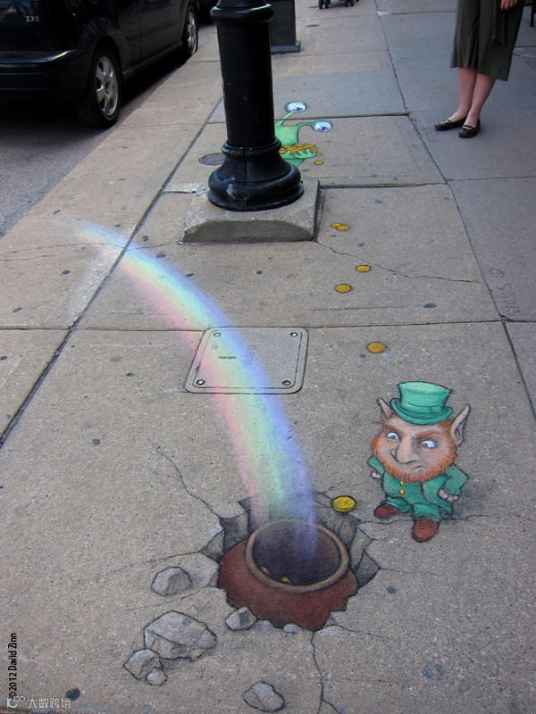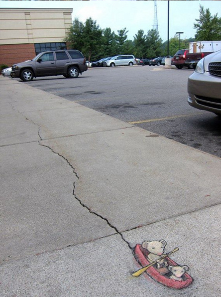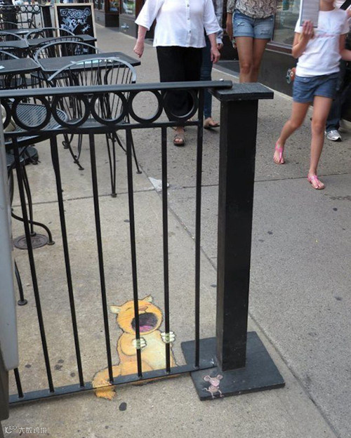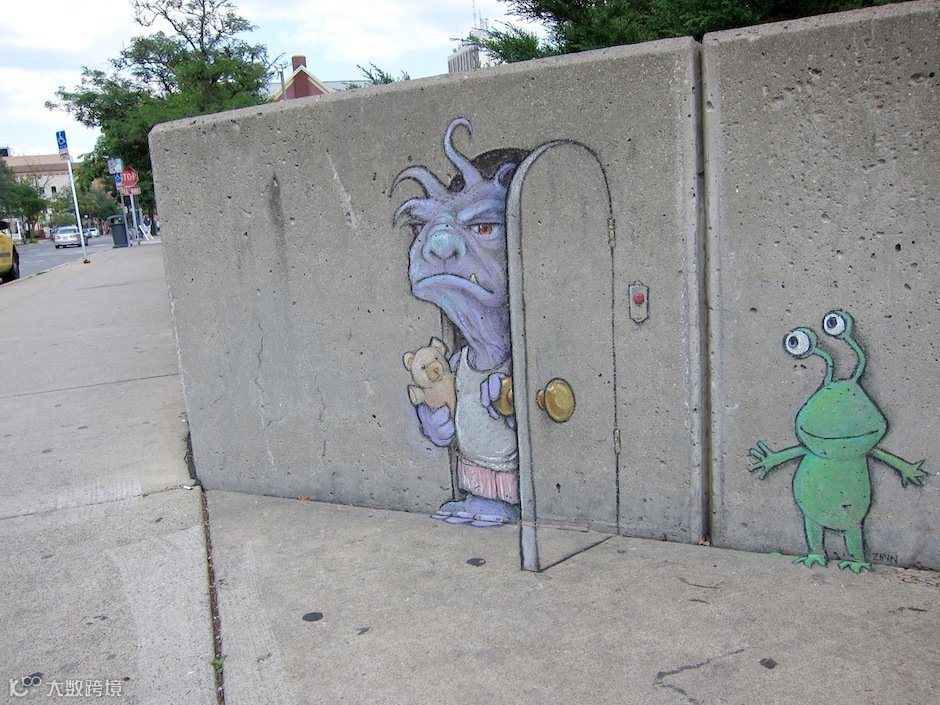 导读:David Zinn是来自美国密歇根州的一位艺术家。他整天奔波于安娜堡的大街小巷,借助街头建筑、道路上的缝隙