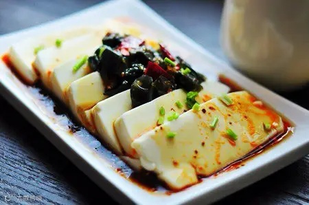 1)小心把豆腐从盒中取出。