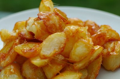 1、土豆去皮,切成大块,入油锅炸至外面成金黄色的硬皮,出锅待用。 2、锅内放少许油,加热,放入白糖,不停搅拌,待糖熬成糖稀后,倒入炸好的土豆,不停翻炒,直到土豆全部都沾到糖稀,立即出锅。
