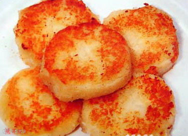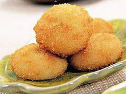 此品外脆内软,香甜可口,但需乘热吃,否则会变硬。