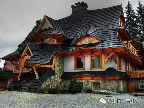 波兰塔特拉山的神奇Wooden Cottage,大部分的建材都是木头,在一大片绿油油的草地上,它就像是独一无二的城堡。
