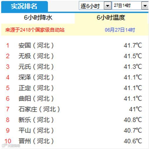 在河北,河北省气象台已于27日11时发布了今年来该省的首个高温红色预警信号。