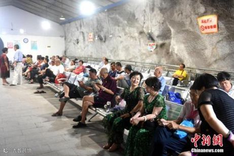 6月27日,福州气象局继续发布高温橙色预警,福州民众在防空洞纳凉。吕明摄