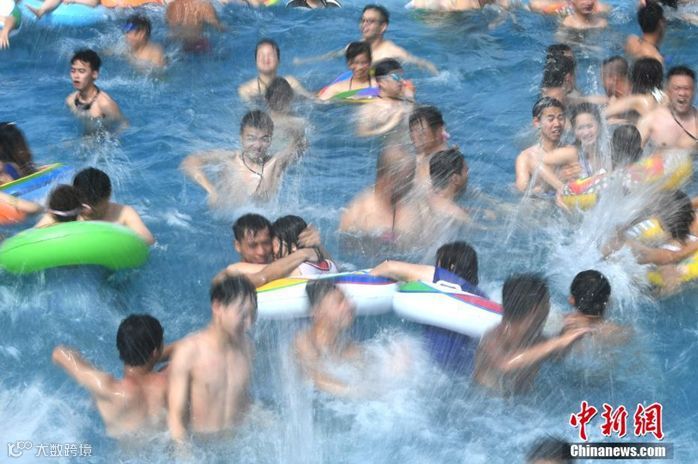 6月23日,重庆民众在水中娱乐。陈超 摄