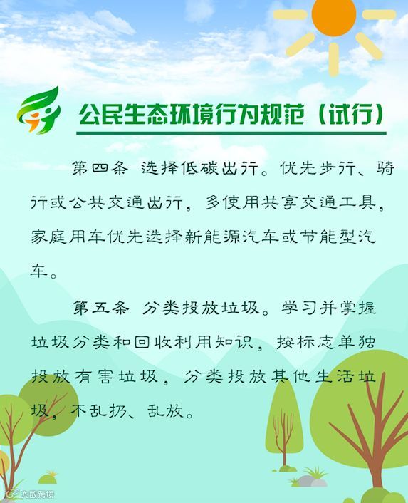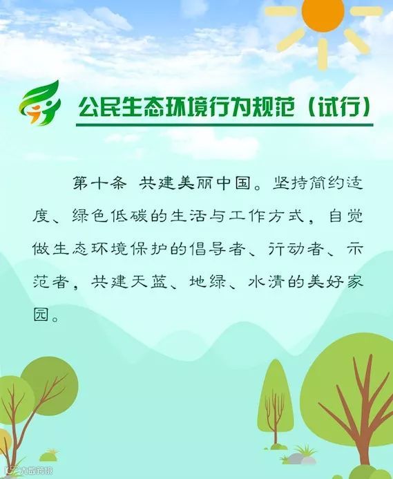 山东天洁项目管理咨询有限公司6月5日是新修订的《环境保护法》规定的第4个环境日。生态环境部、中央文明办、教育部、共青团中央、全国妇联等五部门在2018年六五环境日国家主场活动现场联合发布《公民生态环境行为规范(试行)》(以下简称《规范》),倡导简约适度、绿色低碳的生活方式,引领公民践行生态环境责任,携手共建天蓝、地绿、水清的美丽中国。点击图片看《规范》详细内容↓↓↓