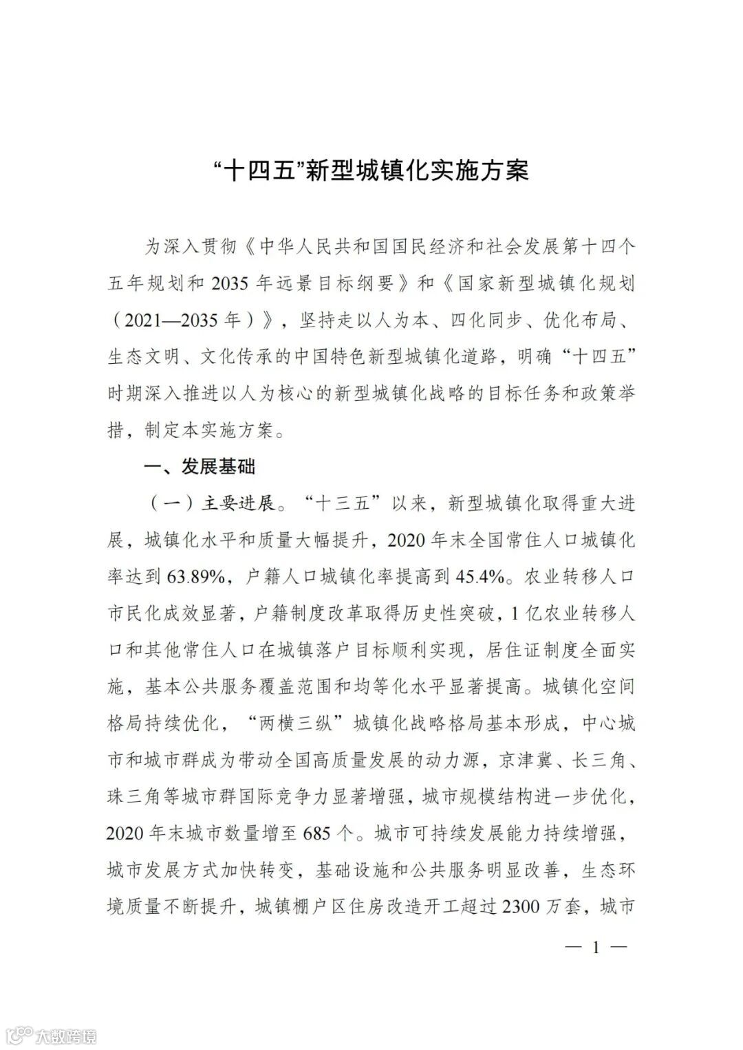 国家发改委:“十四五”新型城镇化实施方案