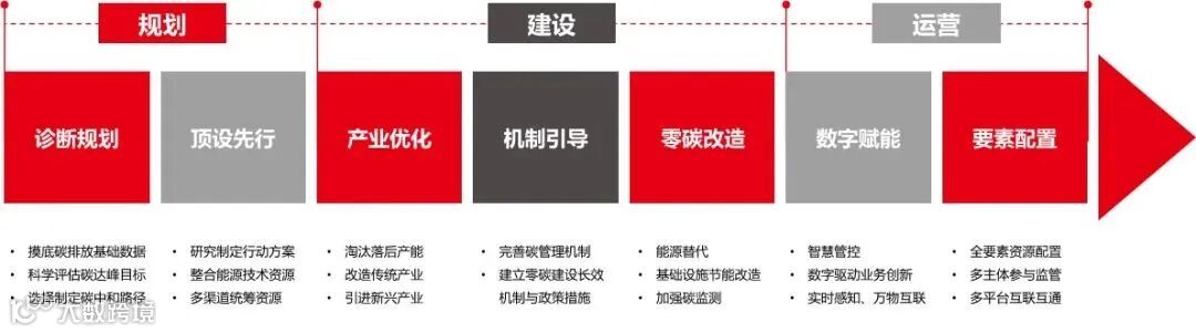白皮书认为,零碳智慧园区是指在园区规划、建设、管理、运营全方位系统性融入碳中和理念,依托零碳操作系统,精准化核算规划碳中和目标设定和实践路径,以泛在化感知全面监测碳元素生成和消减过程,以数字化手段整合节能、减排、固碳、碳汇等碳中和措施,以智慧化管理实现产业低碳化发展、能源绿色化转型、设施集聚化共享、资源循环化利用,实现园区内部碳排放与吸收自我平衡,生产生态生活深度融合的新型产业园区。