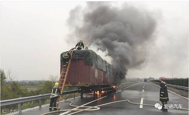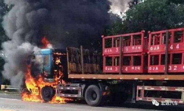 开半挂车的卡友也需要注意,很多货车发生自燃,和挂车轮毂没有及时保养脱离不了关系。长时间的使用导致轮毂内部的油脂变质,润滑的效果急剧下降而温度会升高,容易引发挂车起火。