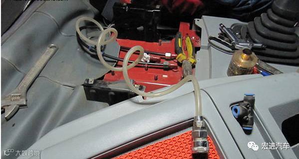 风枪是我们常见用来清洁空滤的工具,除此作用以外,有卡友通过在断气刹管路上加装三通管件,再接上盘管和风枪,利用高压气体清洁驾驶室内部,这样下来一些平时很难触及的缝隙也能打理干净了。