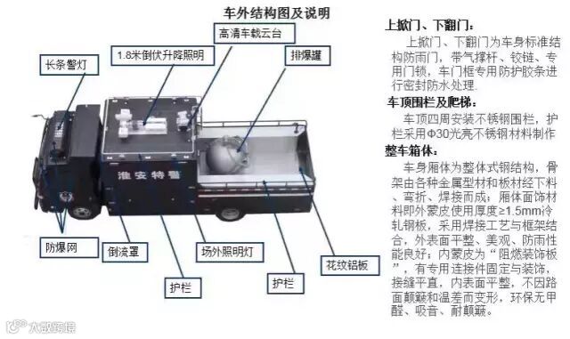 特警专用装备车采用超越NJ1072ZHDCMZ型载货汽车底盘改装,根据出警的要求进行装备布置改装而成,可随时与出警队员的输送车辆同时出警,特警排爆车属于特警专用车的一种,是一种多功能防爆车专用产品,具有设计合理、排爆性能好,安全,性能可靠,适用于任何排爆场所。