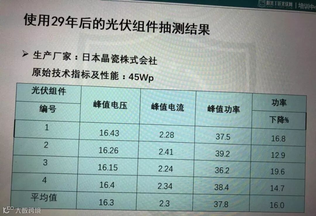 如今它的衰减状况如何?看一份研究所在它运行29年后的光伏组件抽测数据: