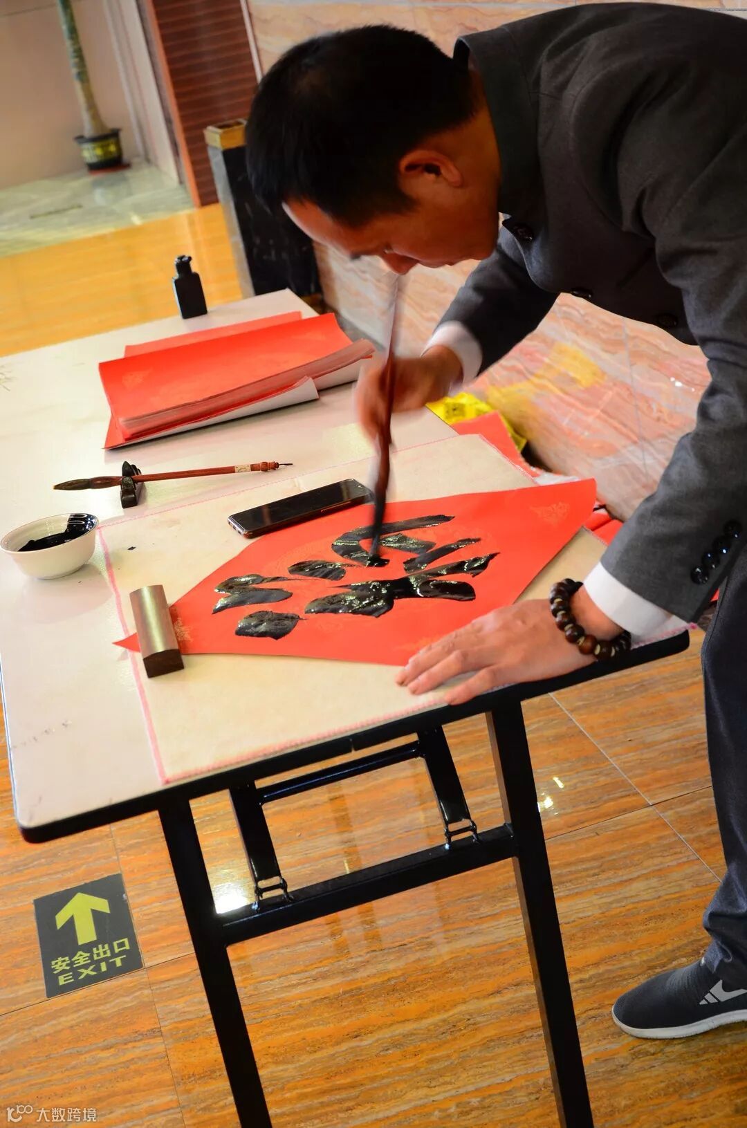 春节将至,你的春联准备了吗?在年会现场,我们特意邀请了嘉宾郑彪先生现场挥毫,为光合人送“福”。