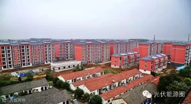 安徽合肥肥西县官亭镇新民村。官亭镇结合美好乡村建设项目,利用新民新农村27栋新建住宅楼及部分商业楼铺设光伏板2560平方米,总装机容量达到400KW。