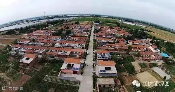 江苏省首个居民屋顶连片集中开发的光伏村——与华西村一路之隔的周庄镇山泉村。一个村投资1100万元,把150户居民的屋顶变成一个大电站,总装机容量达1.02兆瓦,年发电量约为100万千瓦。