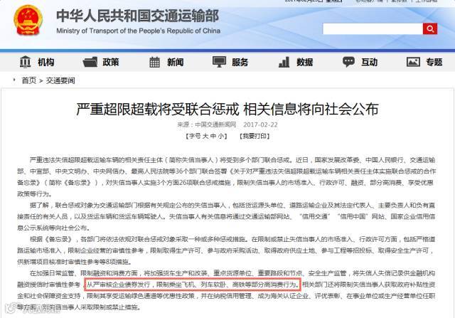 重磅消息!2月22日交通部再次发文强调,严重违法失信超限超载运输车辆的相关责任主体将被列入黑名单!!