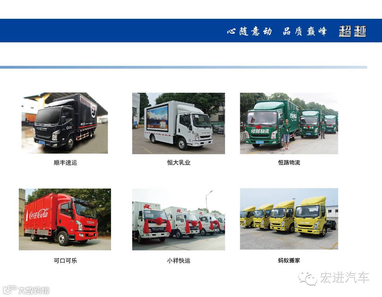上汽跃进(超越)轻卡基于电商快递行业的全生命周期解决方案:——可为电商快递提供“多快好省”的定制化产品:“容积多一方、加速快一分、欧系好品质、低油耗、行车安全!专为同城配送、城际快运等电商快递服务,高效专业舍我其谁!
