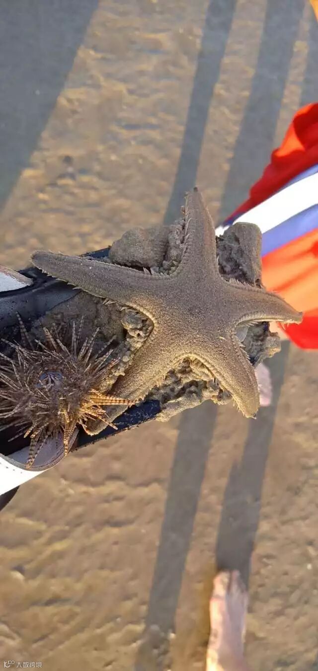沙滩漫步行,看夕阳西下,听海吹风,捡贝壳找海胆,怡然自得。