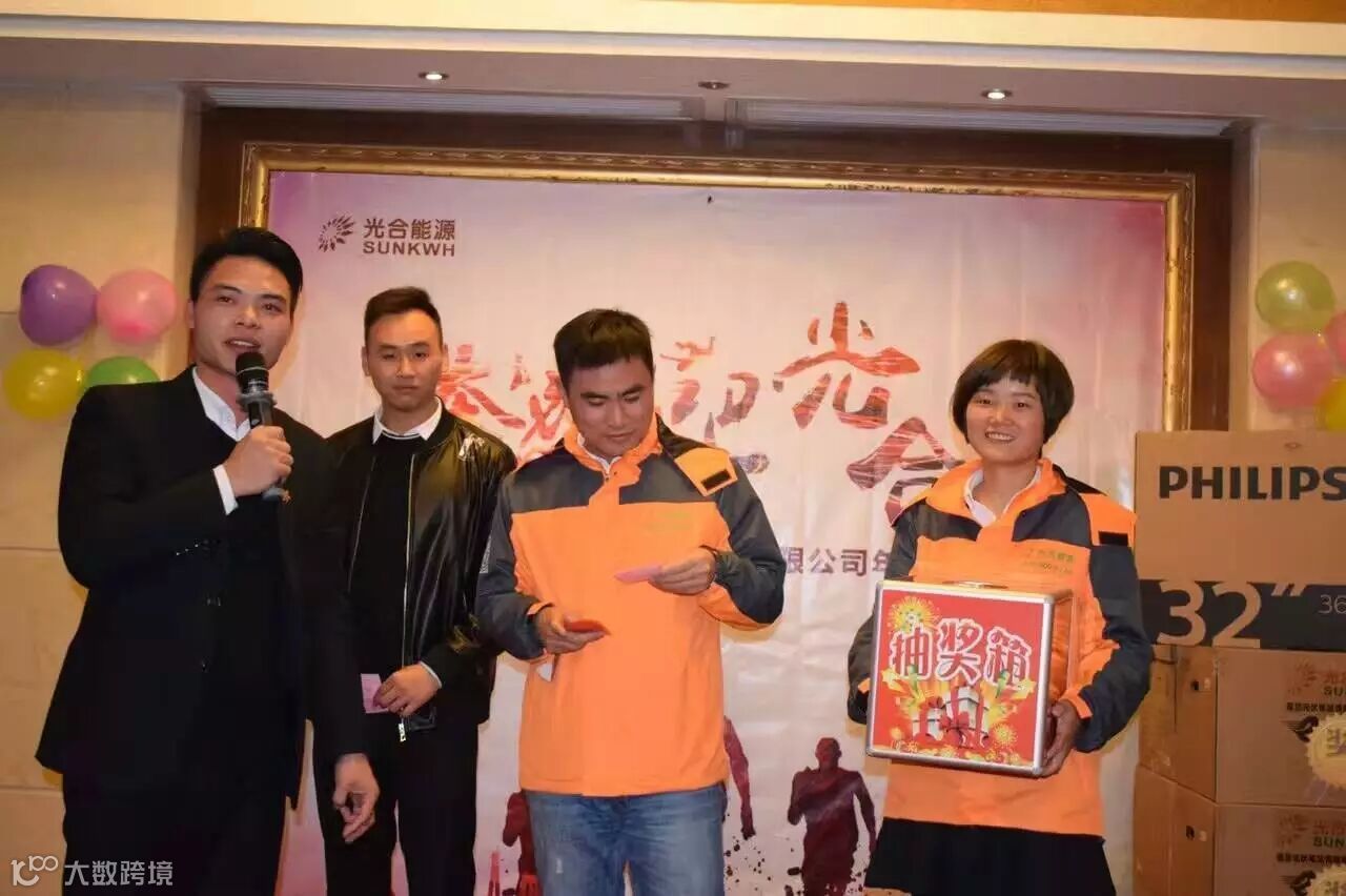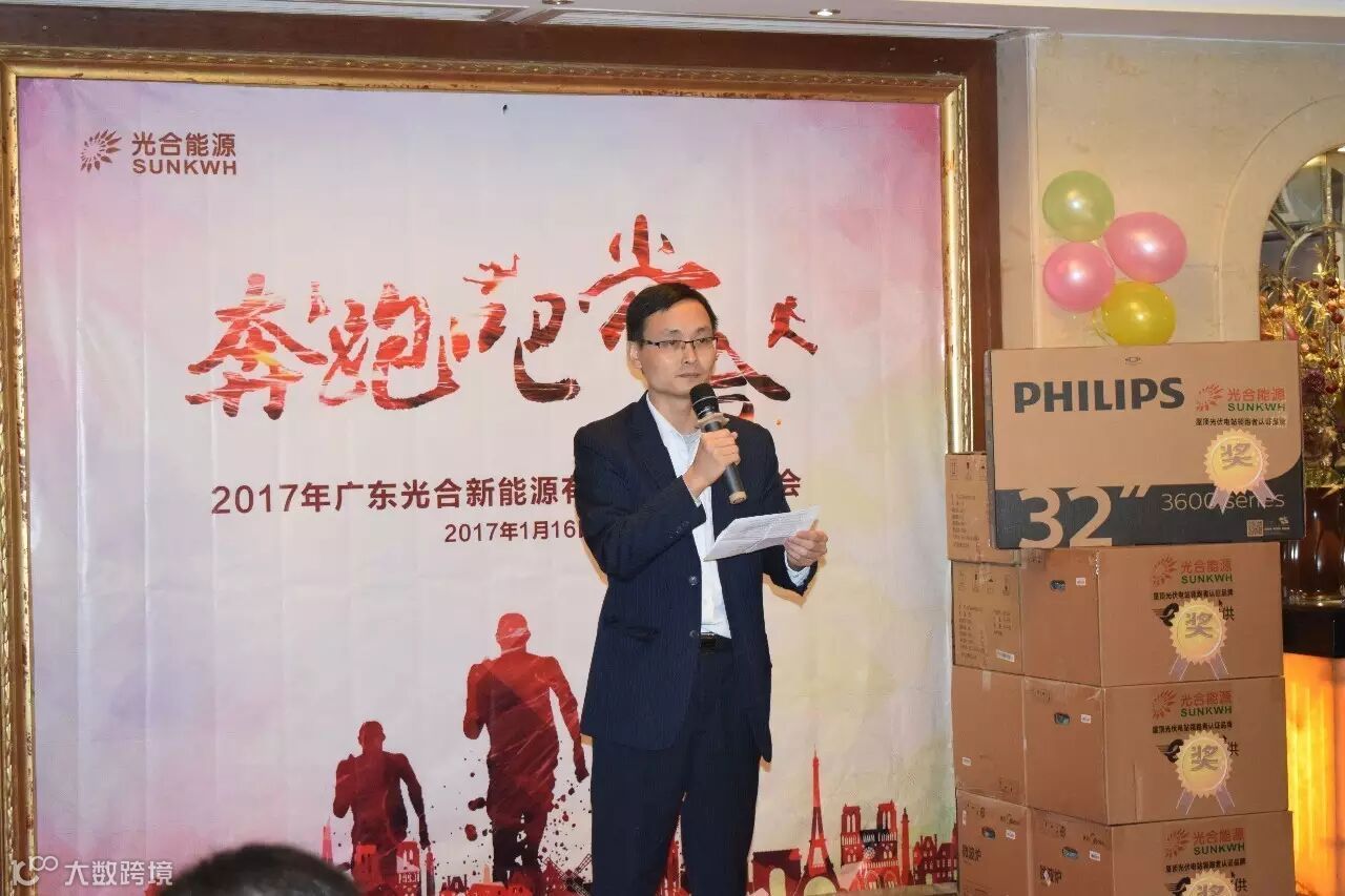 年会在郑总热情洋溢的新年致词中拉开序幕,他说:“在过去 一年里,公司迎来高速发展期,光伏工程累计发电达100多万千瓦时,项目遍布珠三角各个屋顶。规模不断壮大的同时,公司品牌的口碑也获得市场的认可!这些成绩是离不开每一位光合人的付出,光合能源的未来将更加辉煌”。