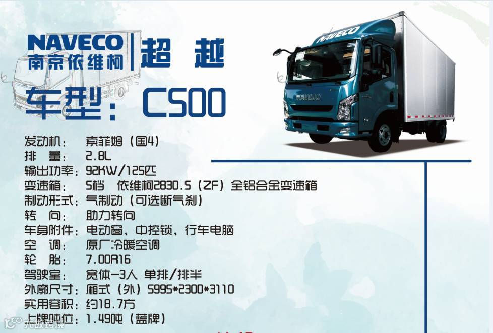 看到这里,也许你会想:这款大胃王不但肚量大,竟然还蛮贴心的。的确,超越C500是城际高端物流车专为拉货而设计,整体车身采用骨架蒙皮,底板结实、耐磨、能承重,侧壁内饰强度高,能承受啤酒箱、木箱等货物的冲击而不破损。另外,为了运输上的方便,车厢外部均装配玻璃。也就是说,这款不但是“大胃王”,而是还是一位“钢胃王”。