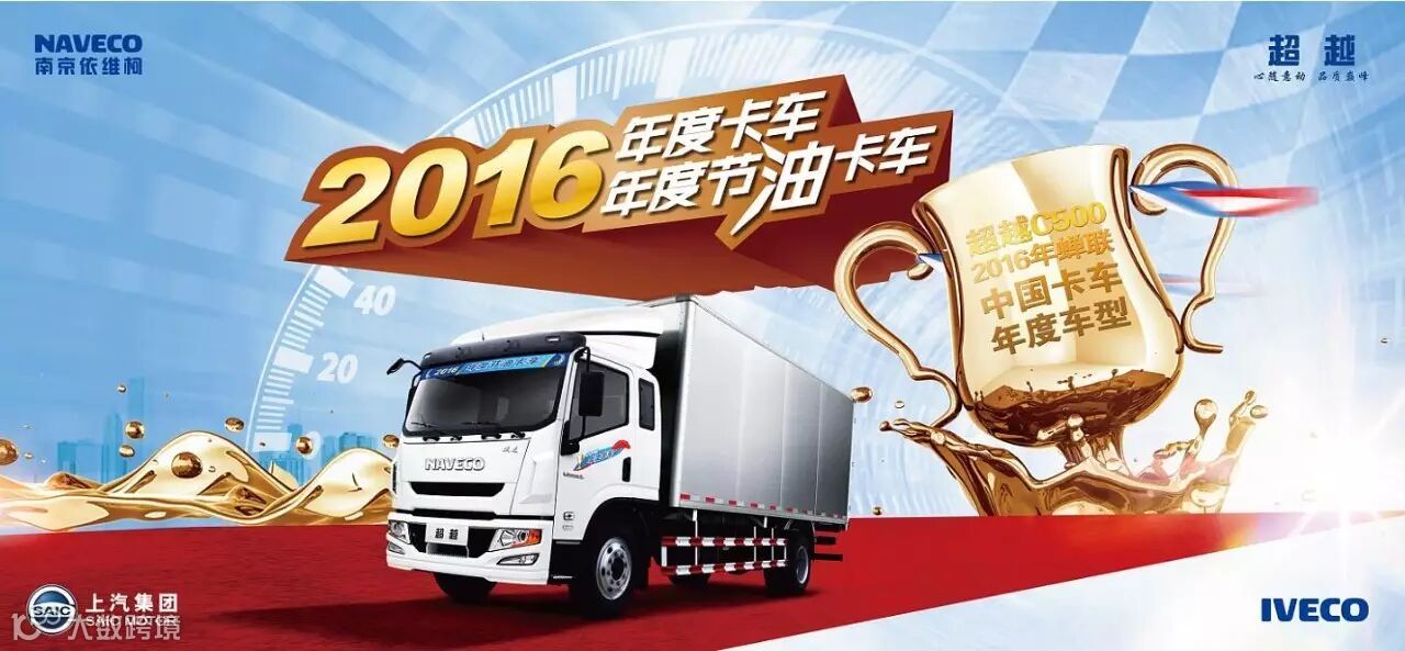 南京依维柯超越在上汽集团与依维柯双方股东的支持下,整合各方面优势资源,斥资十亿专项资金,历经四年精心研发,利用正向开发理念设计制造的欧系卡车。一经问世,就以其强劲的动力、低油耗经济性、欧系标准安全性、驾乘舒适性等方面所具备的独特优势,荣获中国“中国年度轻卡”称号、凤凰卫视“2015年度物流用车”称号、另有超越C500配上柴动力产品荣获中国“2015年度中型卡车”称号等多项荣誉。