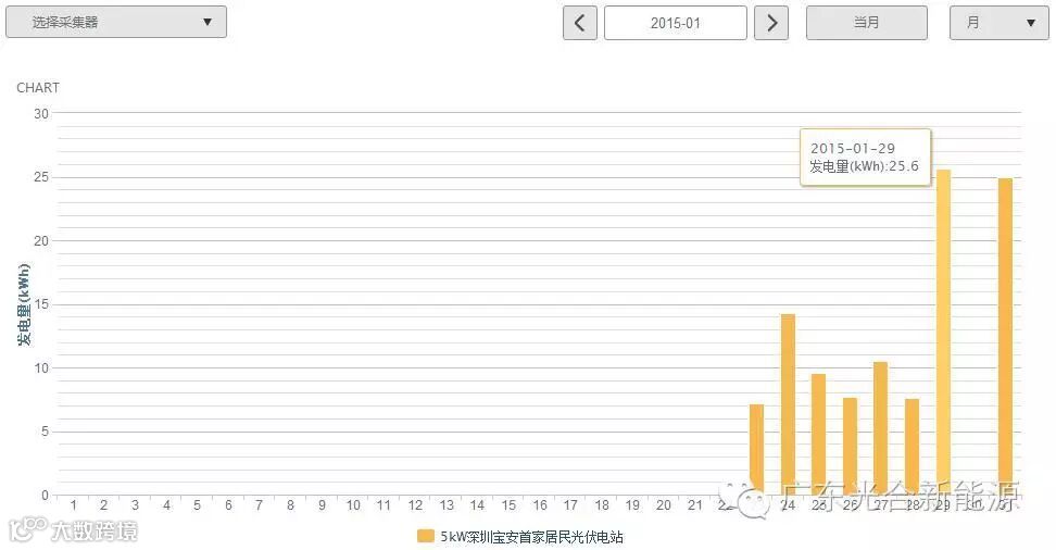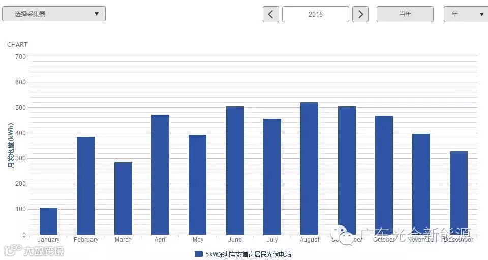 由于2015年下半年以阴雨天气为主,因此光伏电站实际运行功率较低,发电量随之偏低,这跟日均发电量理论值得15度相差并不算特别大。另外光伏电站当初选用的规格为250Wp多晶硅太阳能电池板,转换效率相对较低。现在普遍使用255Wp或以上更高效的多晶硅电池板,若使用转换效率更高的单晶硅电池板,在同样的光照条件下,发电量更多。按照目前太阳能电池板的制造工艺水平,若气候状况属于正常范围,且使用更高效的太阳能电池板,珠三角地区的1kW光伏电站年均发电量普遍在1,000-1,250度之间。若年均发电量的数据远超这范围,数据是不真实的。