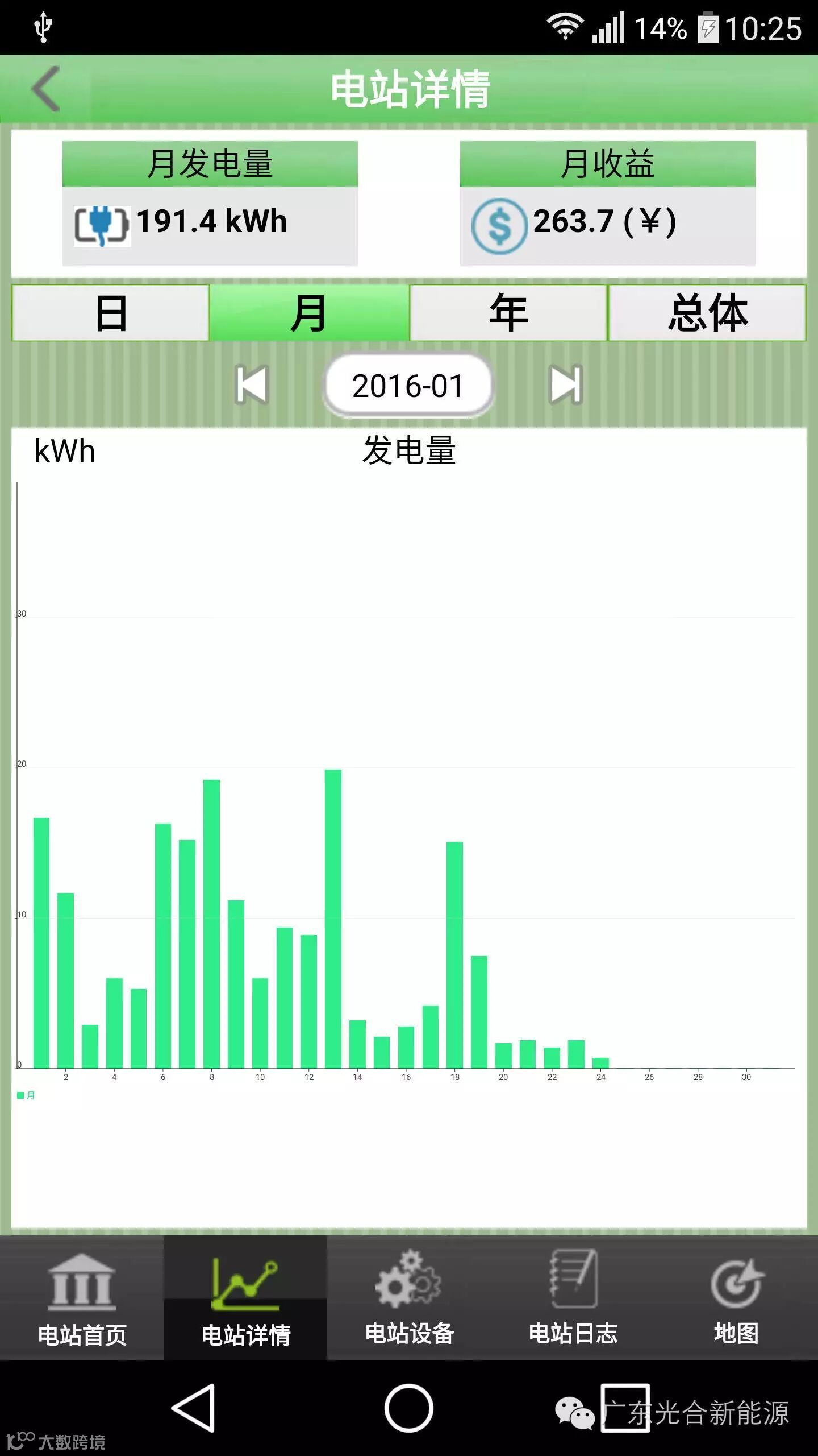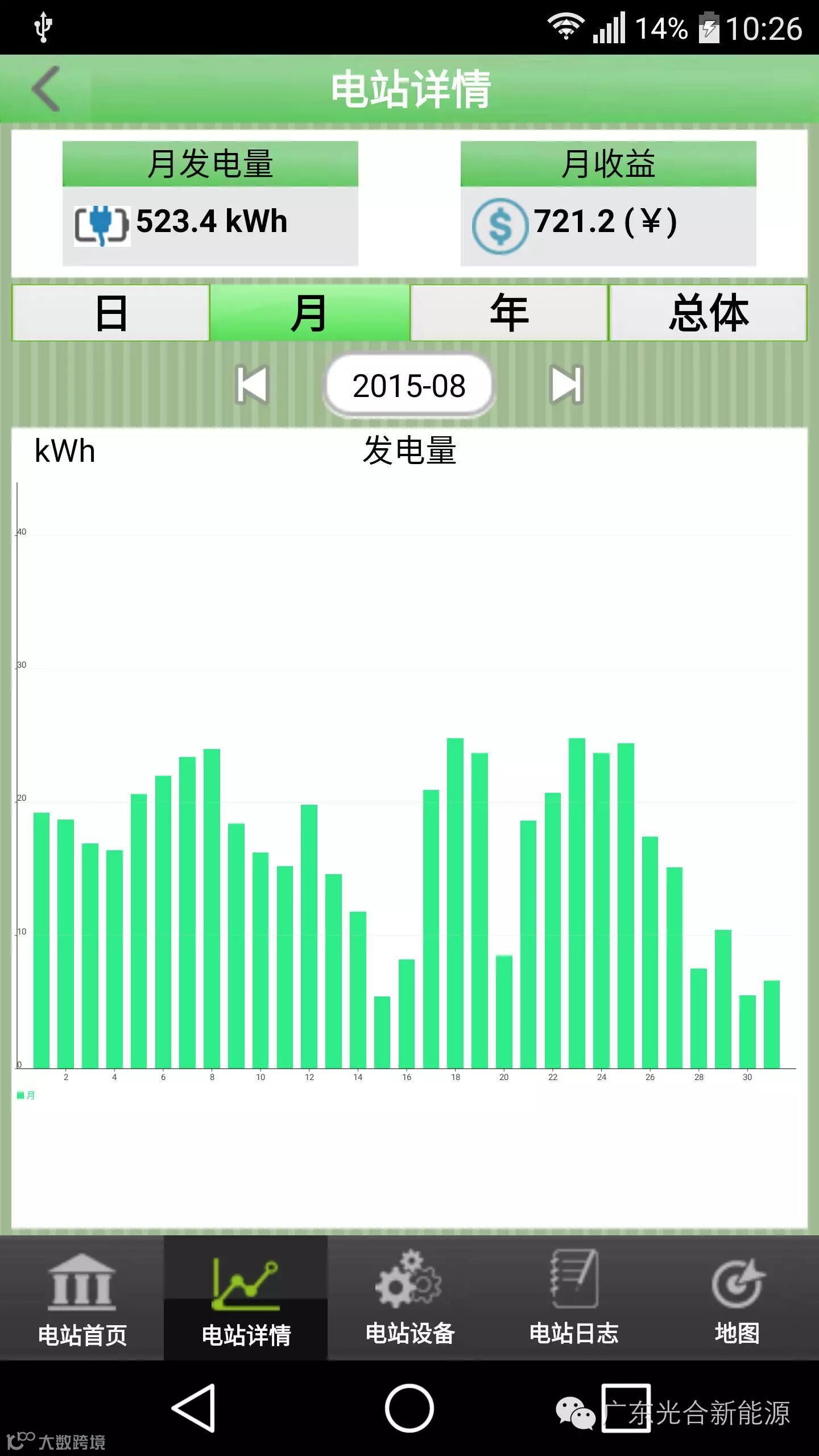 注:若某天没有发电数据,要么是停电,光伏电站停止发电;要么WiFi无线网络存在问题,但光伏电站还是正常发电。