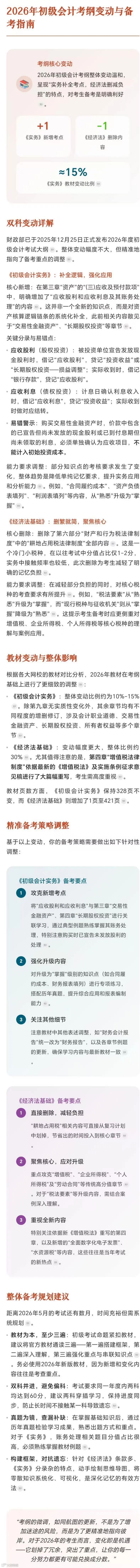 2026年初级会计考纲教材变动与备考调整
