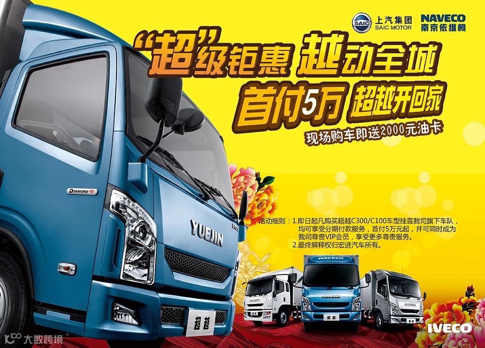 1 .即日起凡购买超越C100/C300车型并挂靠我司旗下车队,均可销售分期付款服务,首付5万起,并可同时成为我司尊贵VIP会员,享受更多尊贵服务。