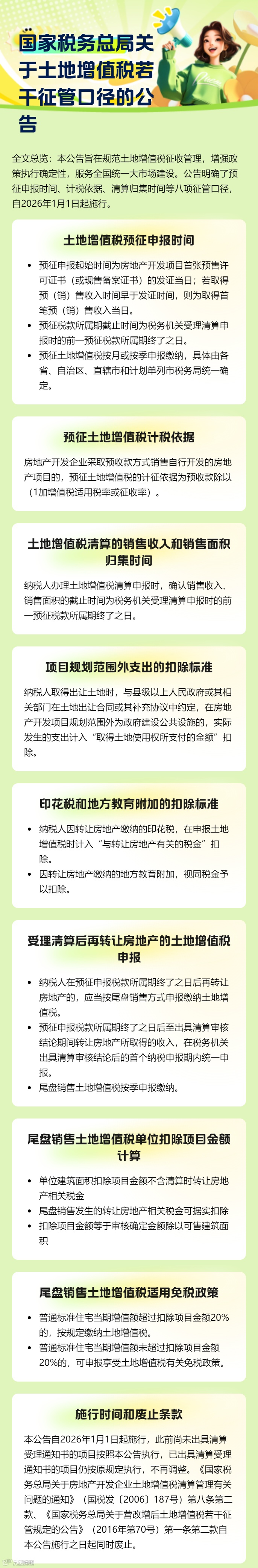 国家税务总局关于土地增值税若干征管口径的公告