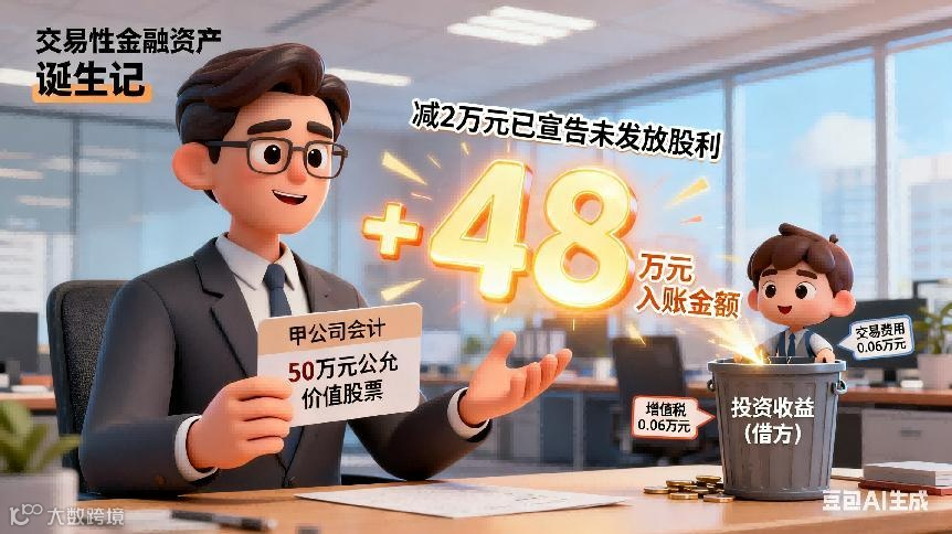 取得时:按公允价值作为初始入账金额,交易费用计入 “投资收益” 借方;支付价款中包含的已宣告未发放现金股利或已到付息期未领取的利息,计入 “应收股利”“应收利息”。